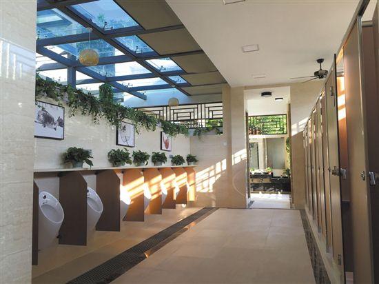 在空間布局上,主入口設(shè)置嶺南風(fēng)格屏風(fēng),具有男女衛(wèi)生間、第三衛(wèi)生間、母嬰室、管理間、工具間、觀景平臺(tái)、洗手區(qū)、中央庭院休閑區(qū)等10多個(gè)分區(qū),天面采用半坡屋頂,天窗采光。