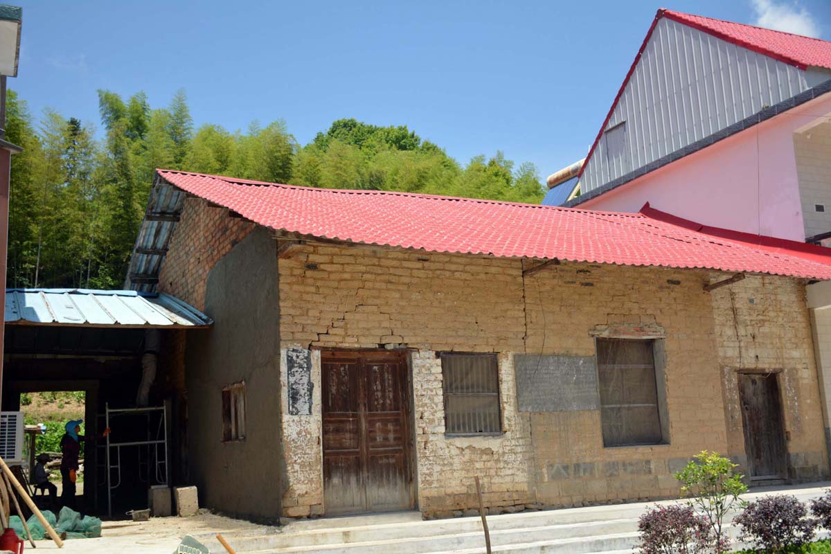 圖為工人在用粉刷墻壁。老屋是用土磚砌起來的,以前,屋頂上蓋的是泥巴瓦,現(xiàn)在,房子的主人將其換成了紅色樹脂瓦。村民說,要像儲大叔保護(hù)上馬石一樣保護(hù)老房子,說不定將來這樣的房子成為村里的一道景點(diǎn)。