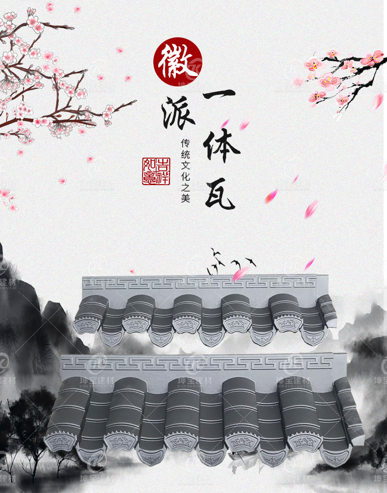 用途:徽派建筑裝飾(室內(nèi)外皆可用)圍墻、門(mén)頭、徽派古建筑、徽派小瓦