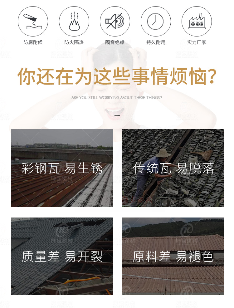 用途:平改坡屋面,別墅屋面,農(nóng)村自建房屋面,民宅屋面,工業(yè)廠房,仿古建筑,涼亭圍墻裝飾等