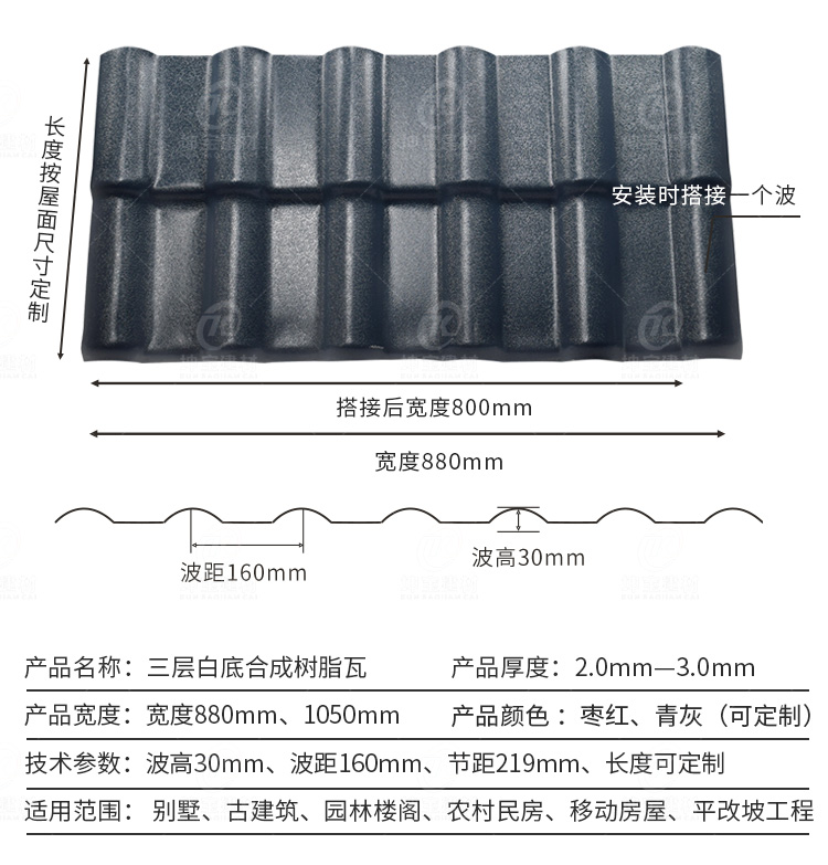 | 顏色:棗紅、青灰、藍色等 | 波高:30mm |