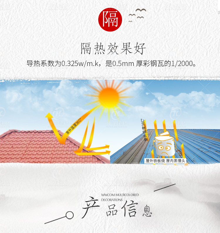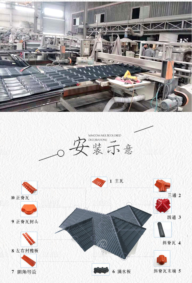 用途:平改坡屋面,別墅屋面,農(nóng)村自建房屋面,民宅屋面,工業(yè)廠房,仿古建筑,涼亭圍墻裝飾等