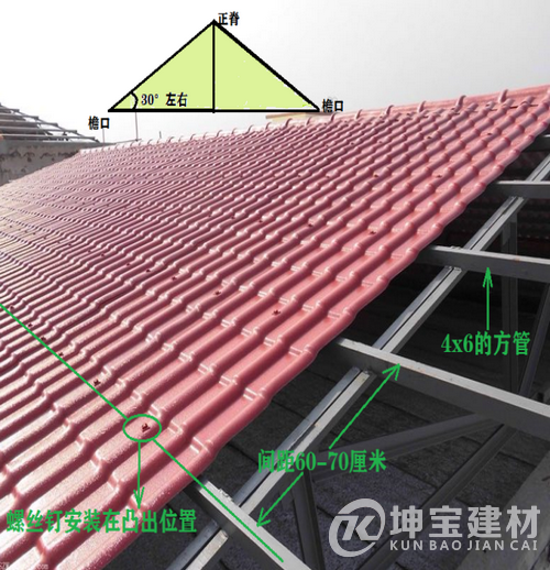 再就是樹脂瓦的安裝坡度,樹脂瓦是不適合平屋頂使用的,適合20-80°的屋面使用。還有就是安裝角度問(wèn)題,樹脂瓦屋架的安裝應(yīng)以準(zhǔn)確的安裝角度為基礎(chǔ),建議按屋脊瓦135°角安裝。推薦閱讀:北方和南方樹脂瓦屋頂坡度分別是多少?怎么計(jì)算?