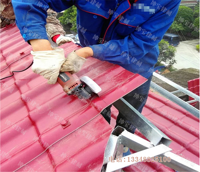 合成樹脂瓦采用高耐候性ASA工程樹脂、韌性骨架層和高強度PVC耐磨層三層共擠壓制而成;有2.5mm-3.0mm多種厚度可選,寬度有880mm和1050mm兩種,默認長度為6130mm,也可根據(jù)需要任意裁剪。