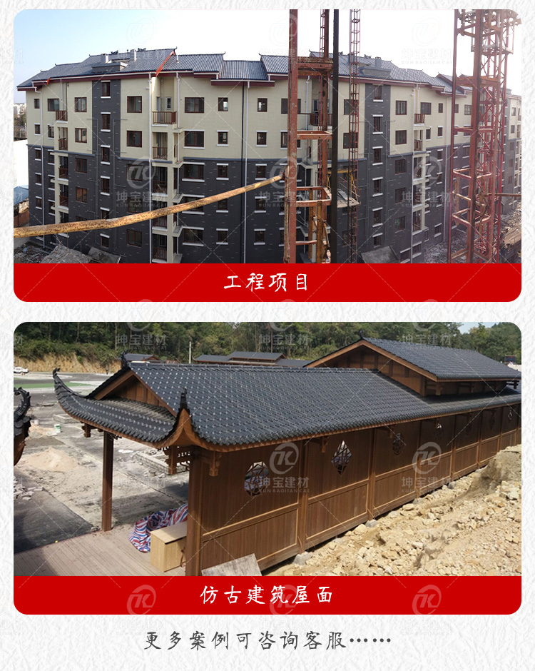 用途:平改坡屋面,別墅屋面,農村自建房屋面,民宅屋面,工業(yè)廠房,仿古建筑,涼亭圍墻裝飾等